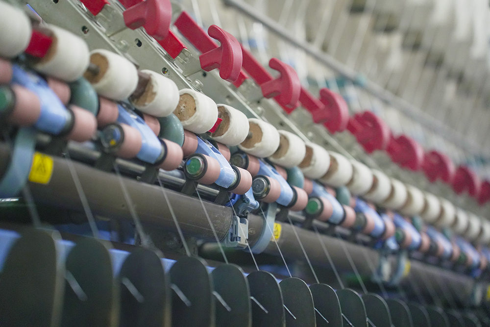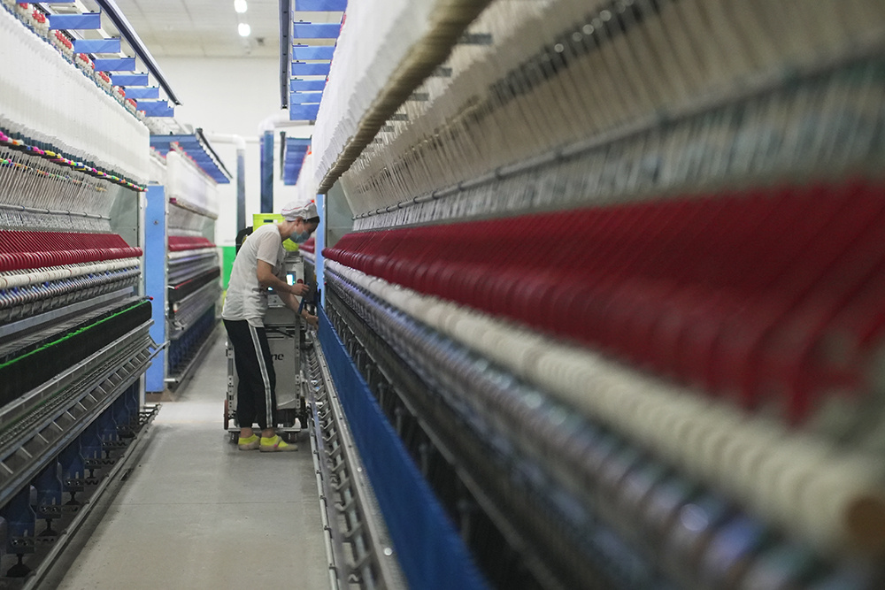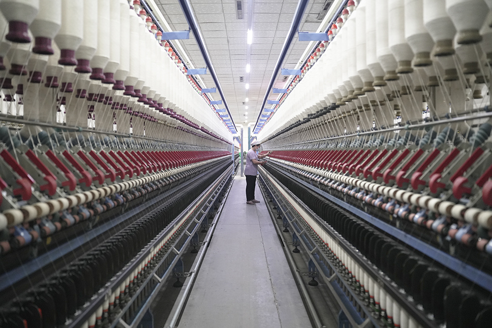 纺纱企业车间自动化设备高速运转。杜昭 摄
