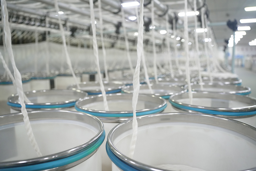 在企业车间内,机器轰鸣、纱梭飞旋,这里不仅有自动化设备有序运转的高效场景,清棉、梳棉、精梳等工艺流程在规范操作下无缝衔接,更藏着一份推动产业绿色转型的深层动力,