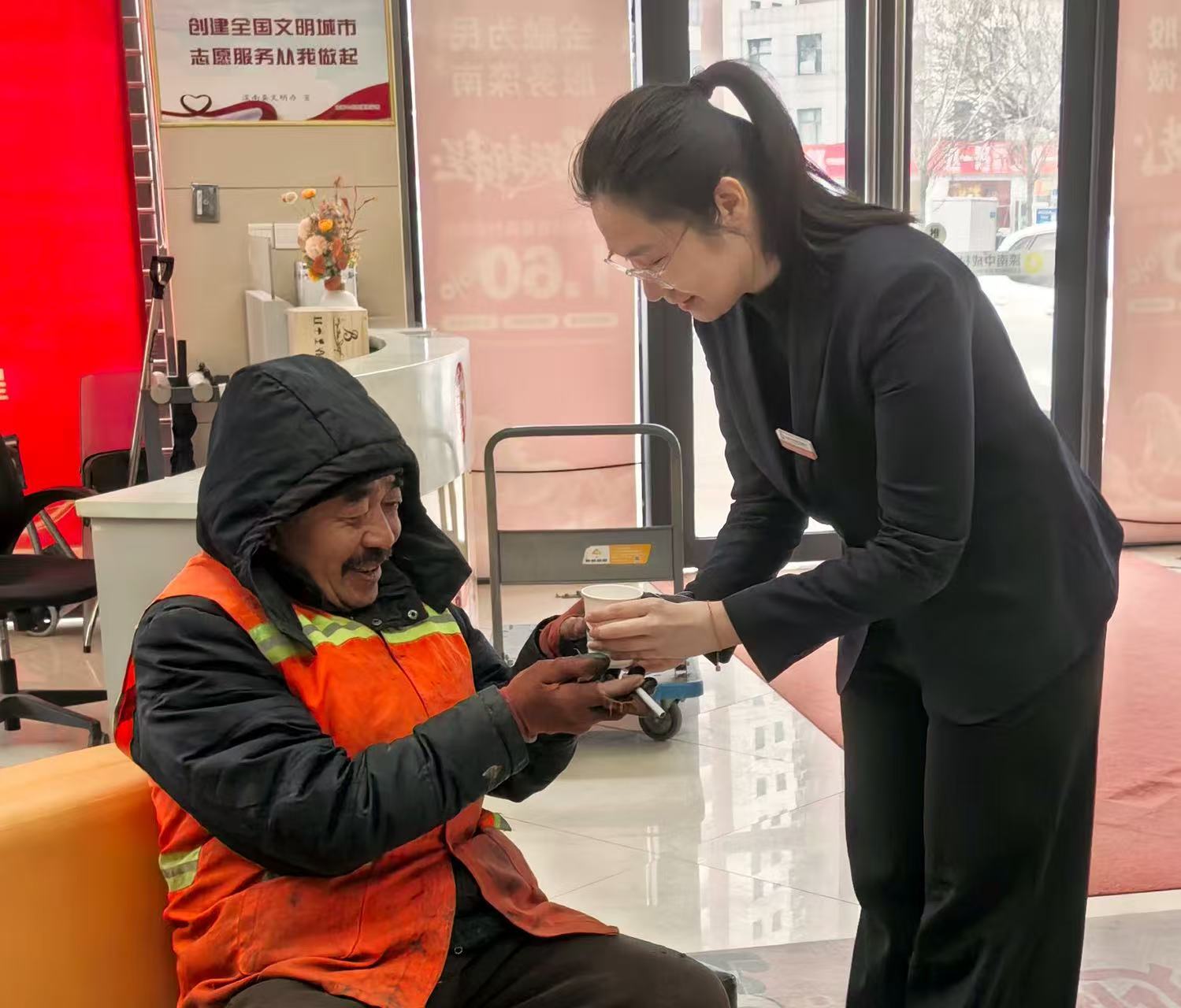仲春时节,暖意渐浓。滦南中成村镇银行坚守本土金融机构初心使命,积极践行社会责任,在营业网点全面启动 “关爱城市美容师” 暖心服务行动,以免费热水、爱心休息区等贴心举措,向坚守一线的环卫工人致以诚挚关怀,让金融温度浸润滦南城乡。