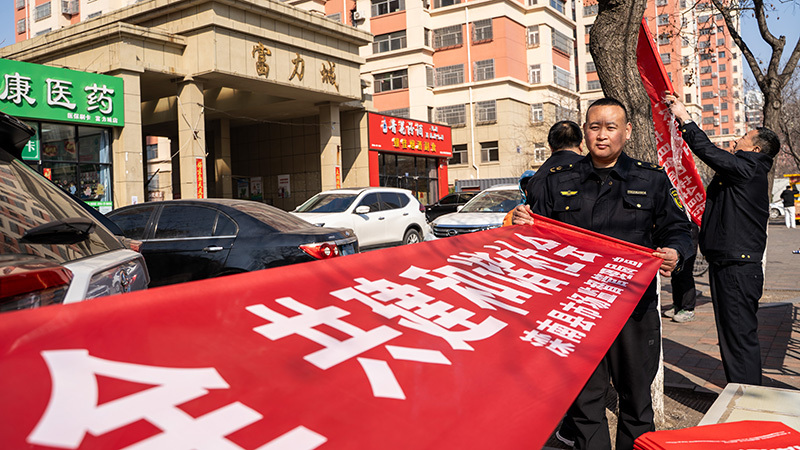 滦南县市场监督管理局工作人员们正在悬挂条幅。赵江涛 摄
