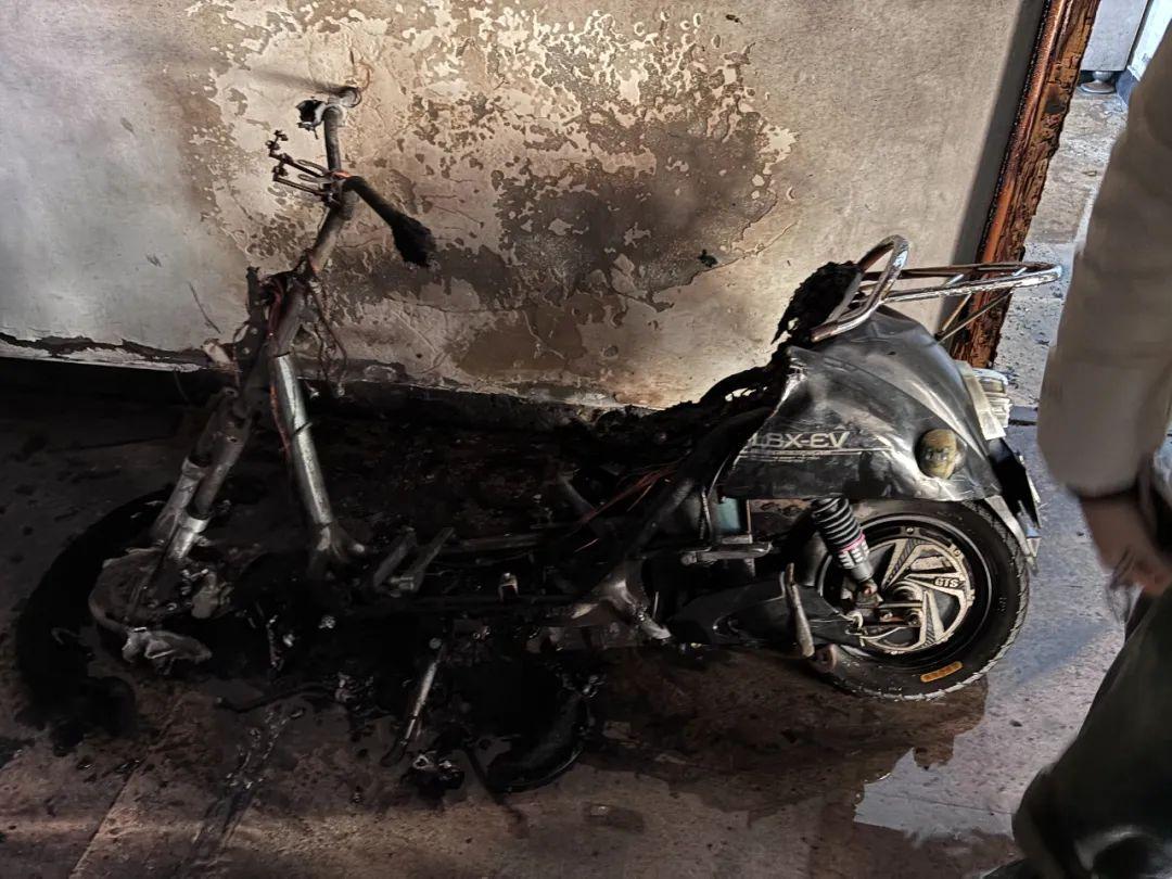 5分钟电动车烧成一副铁架