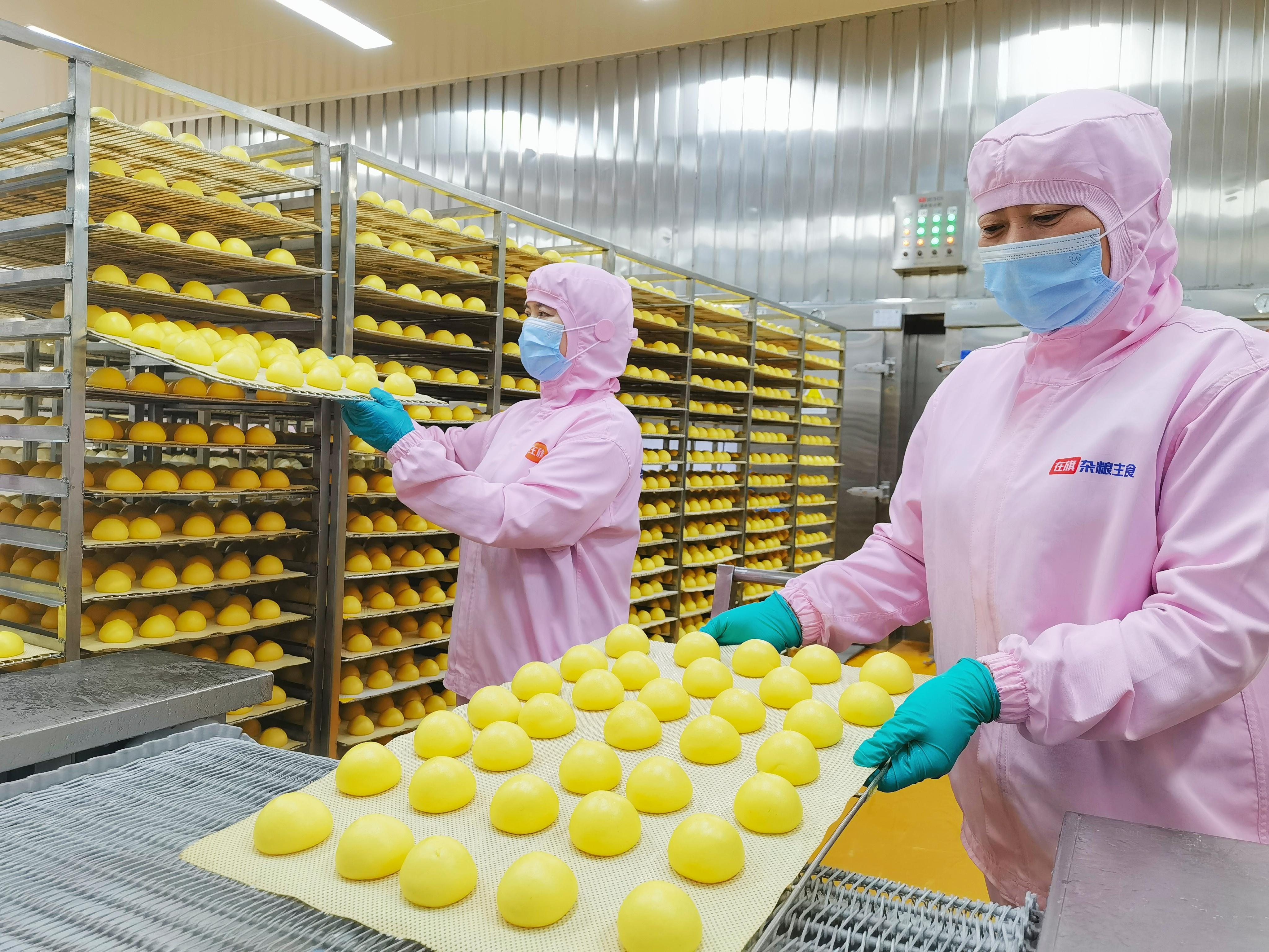 图为秦皇岛在旗生态食品有限公司员工正在蒸制车间赶制非遗黏豆包年货订单。科技日报记者 陈汝健 摄