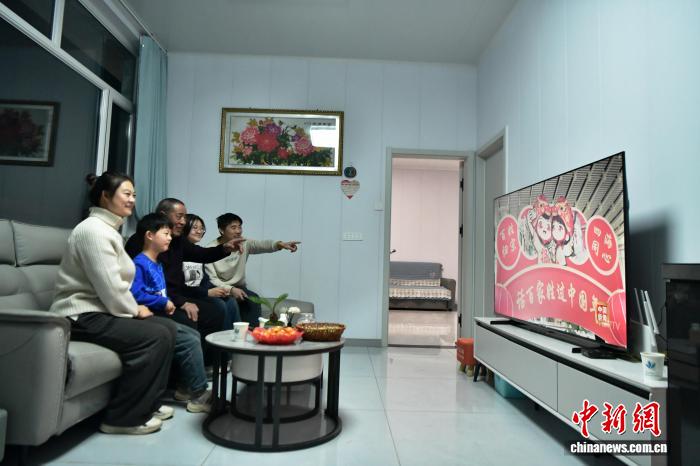 2月10日傍晚,六道沟村村民于君正和家人一起看电视。 中新网记者 翟羽佳 摄