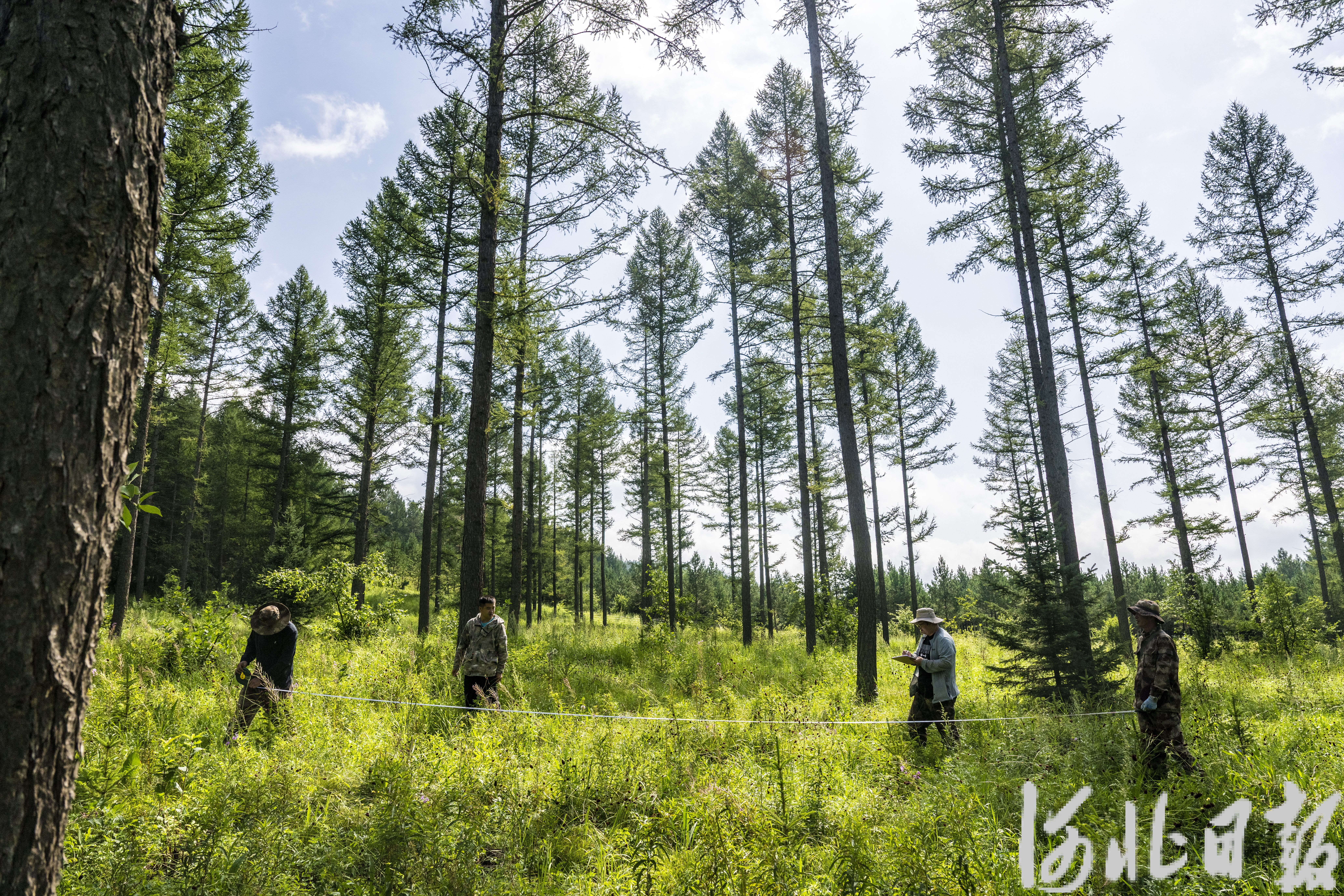 密林间,技术员正在检查春季新造的混交林。他们俯身拨开腐殖层,测量着云杉幼苗的地径。去年,塞罕坝机械林场完成森林抚育12万亩、造林0.92万亩,发展混交林2.2万亩,全场混交林占比达25.4%,成功申报省级林木种质资源库,塞罕坝森林生态系统的多样性、稳定性与持续性稳步提升。
