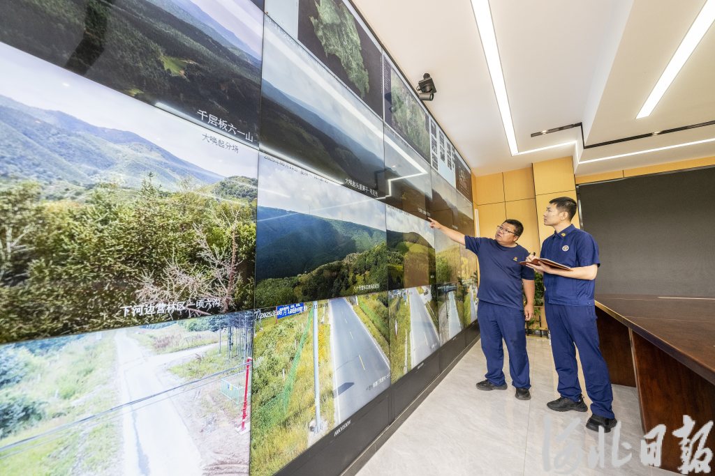 8月11日,工作人员在塞罕坝机械林场森林防火指挥中心值守。