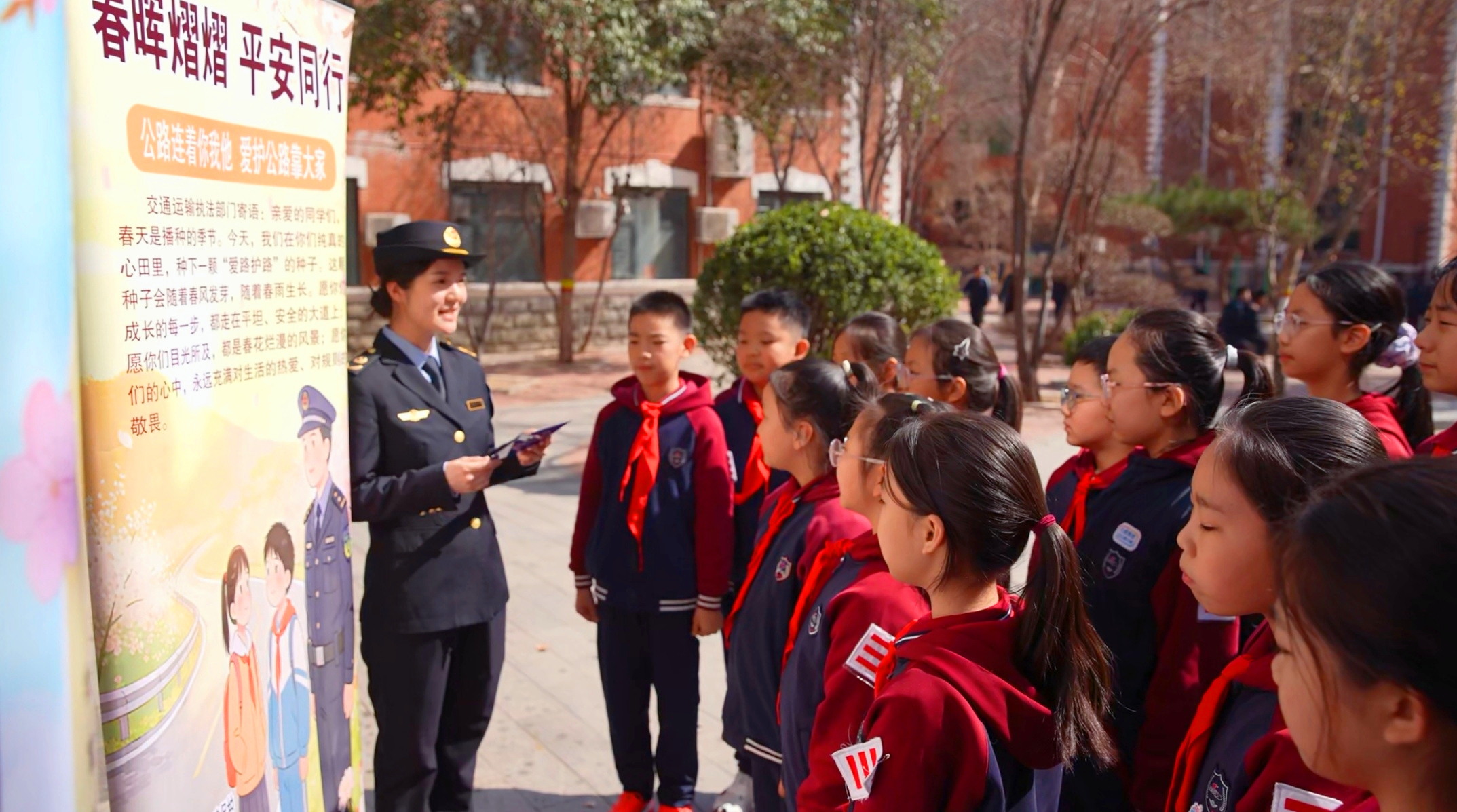 在石家庄第二外国语学校,执法人员以“爱路护路 共享美好春天”为主题,为小学生们带来了一堂生动的户外“开学第一课”。“公路就像城市的血管,承载着每天的出行和货物的运输。”执法人员用童趣十足的语言,引导孩子们认识公路的重要性,教导他们不在公路上嬉戏打闹、不向公路抛杂物、不破坏路边的花草护栏。